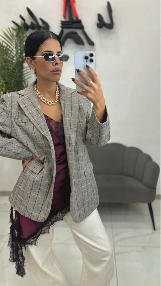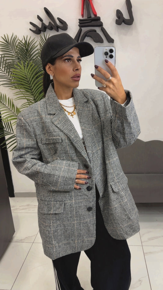 Giacca quadri in lana , taglio maschile . Veste bene fino ad una taglia L
