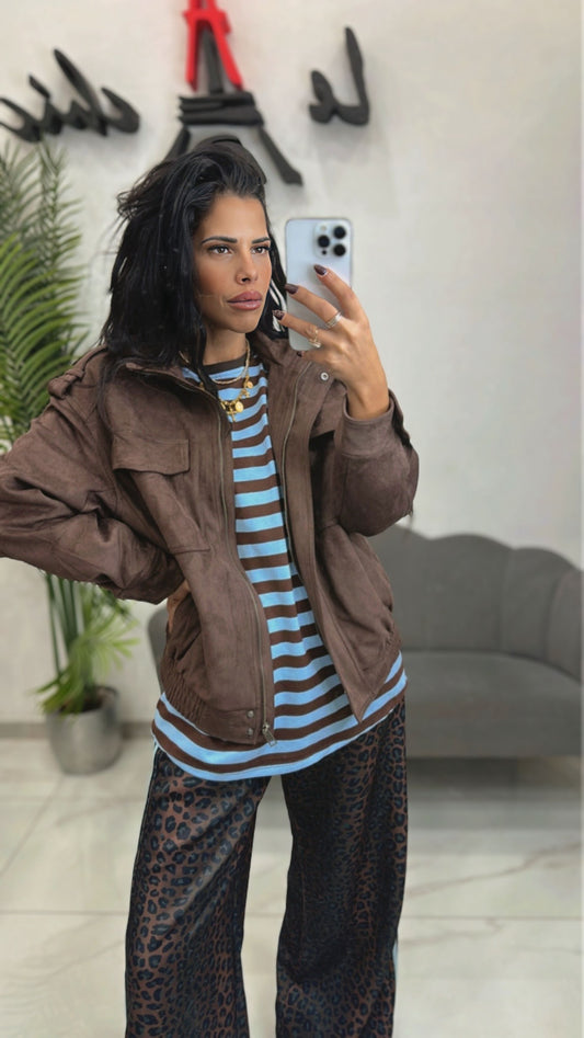 Dona un tocco deciso e sofisticato ai tuoi outfit con questo giubbino in camoscio effetto...