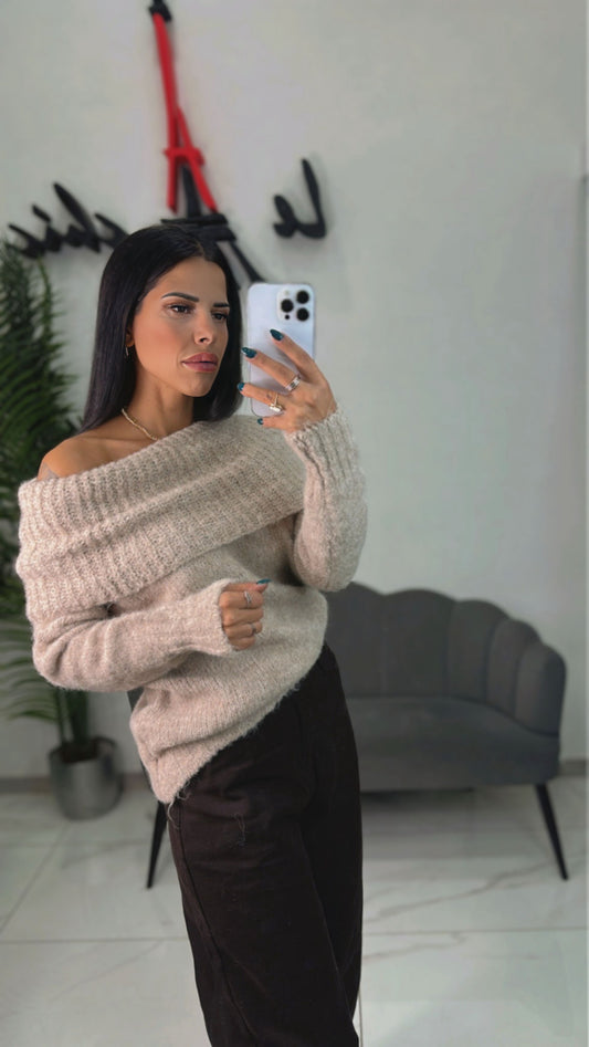 Maxy maglia in Lana con scollo ampio a V e bordo in Pizzo.