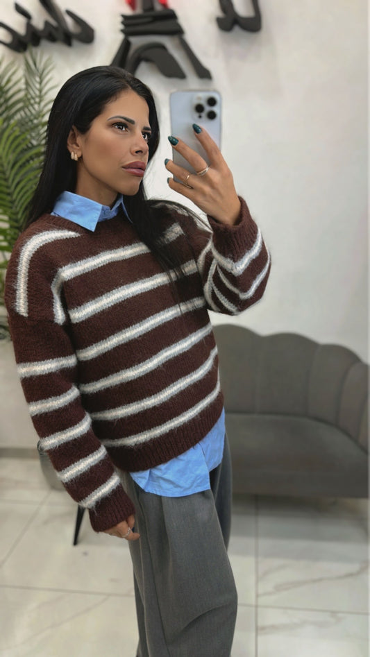 Polo a righe in cotone beige e bordeaux in taglia unica