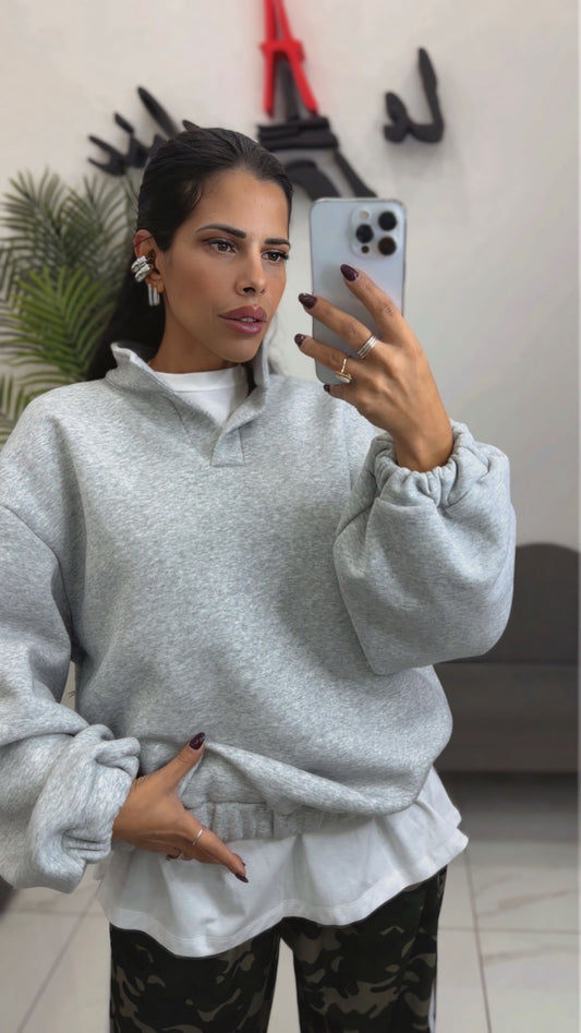 Felpa modello polo over con elastico – Super felpata (Taglia unica) Comoda,...