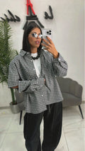 Camicia Over a Quadri( Bianco e Nera ) over, con apertura sul braccio.