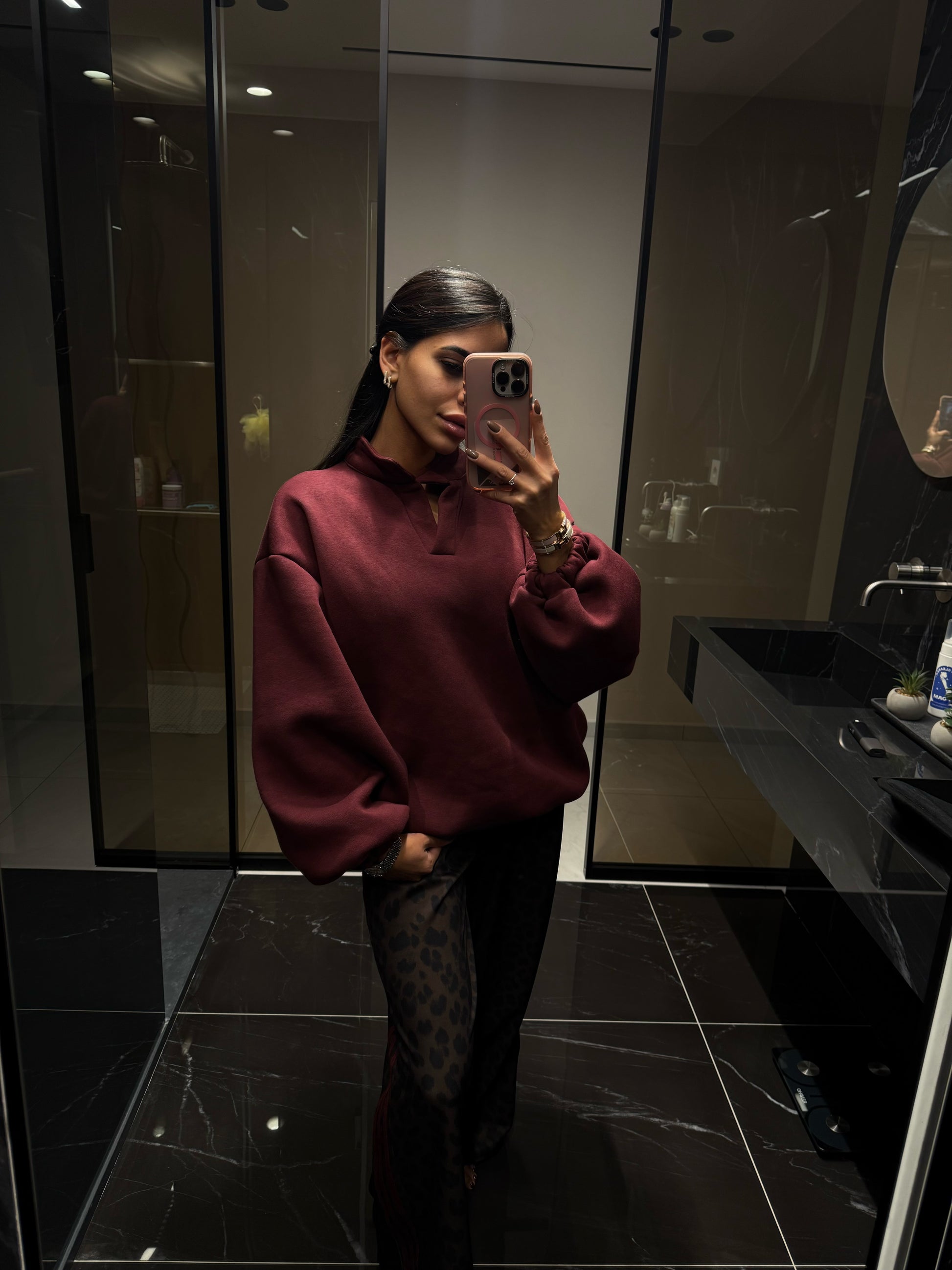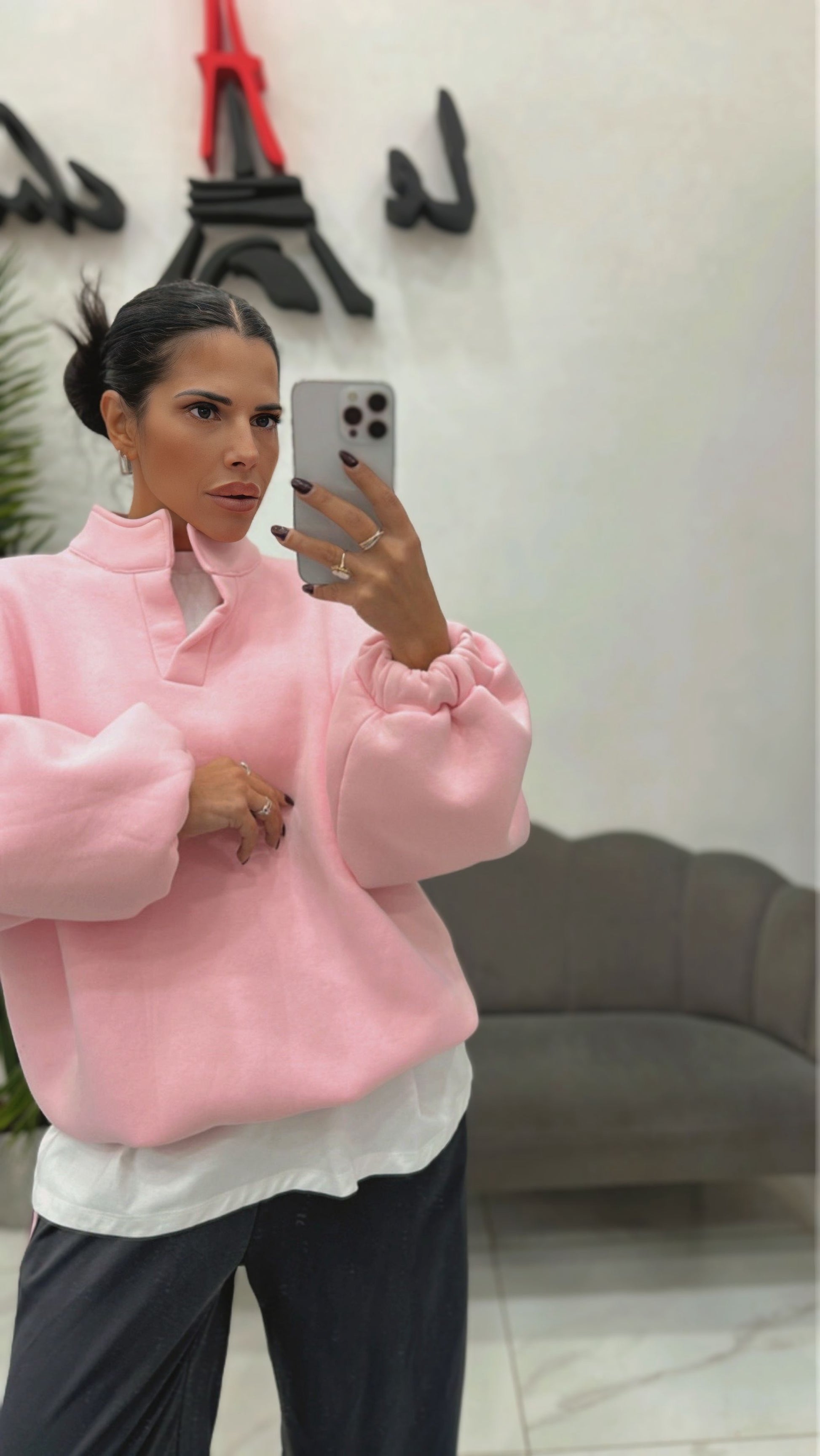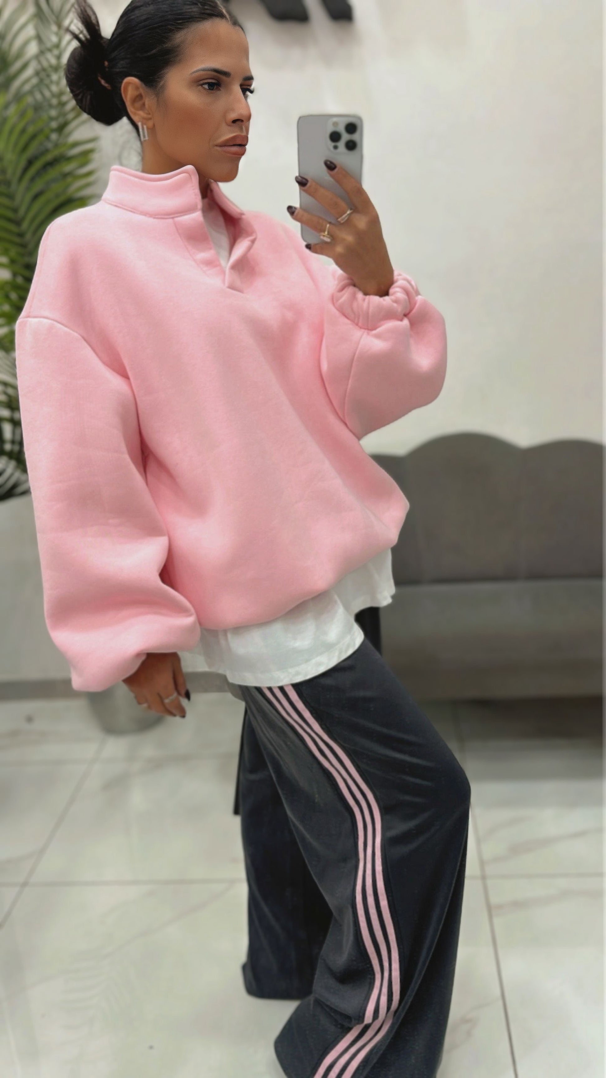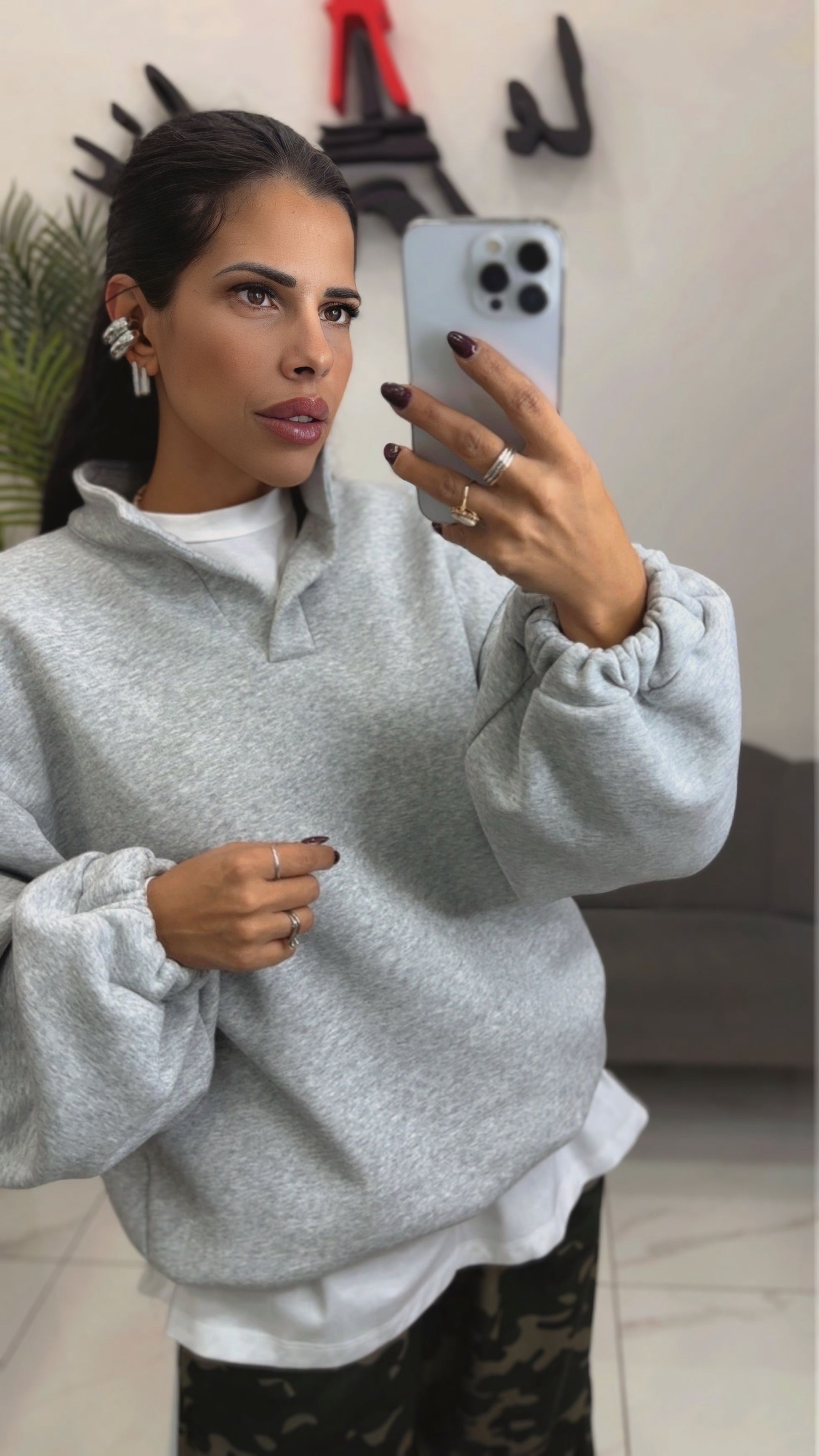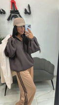Felpa modello polo over con elastico – Super felpata (Taglia unica)
