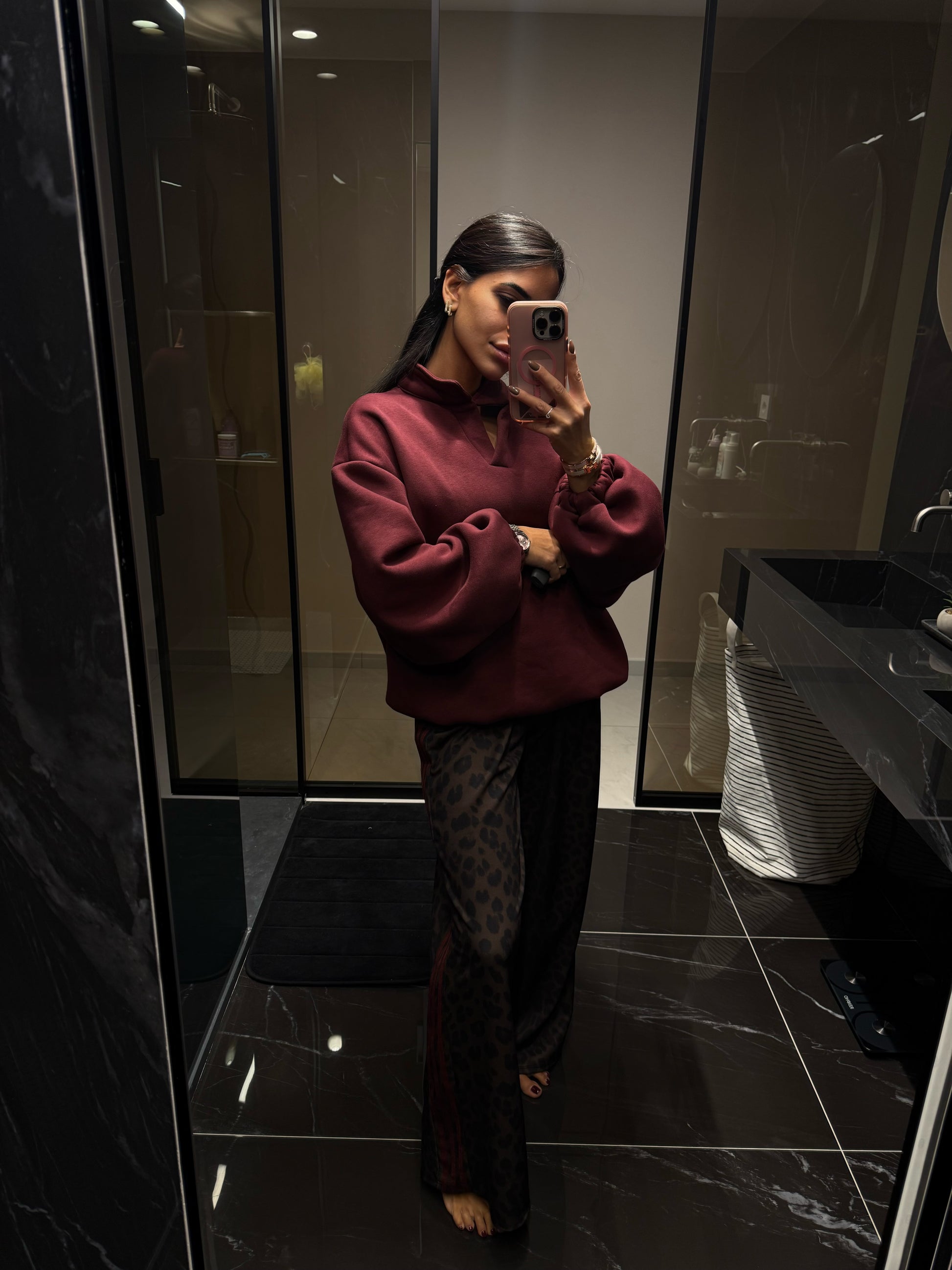Il taglio over garantisce libertà di movimento e uno stile rilassato, mentre l’elastico sul fondo e ai polsi aggiunge un tocco di volume e definizione alla silhouette. Il colletto stile polo dona un dettaglio sportivo ma sofisticato.