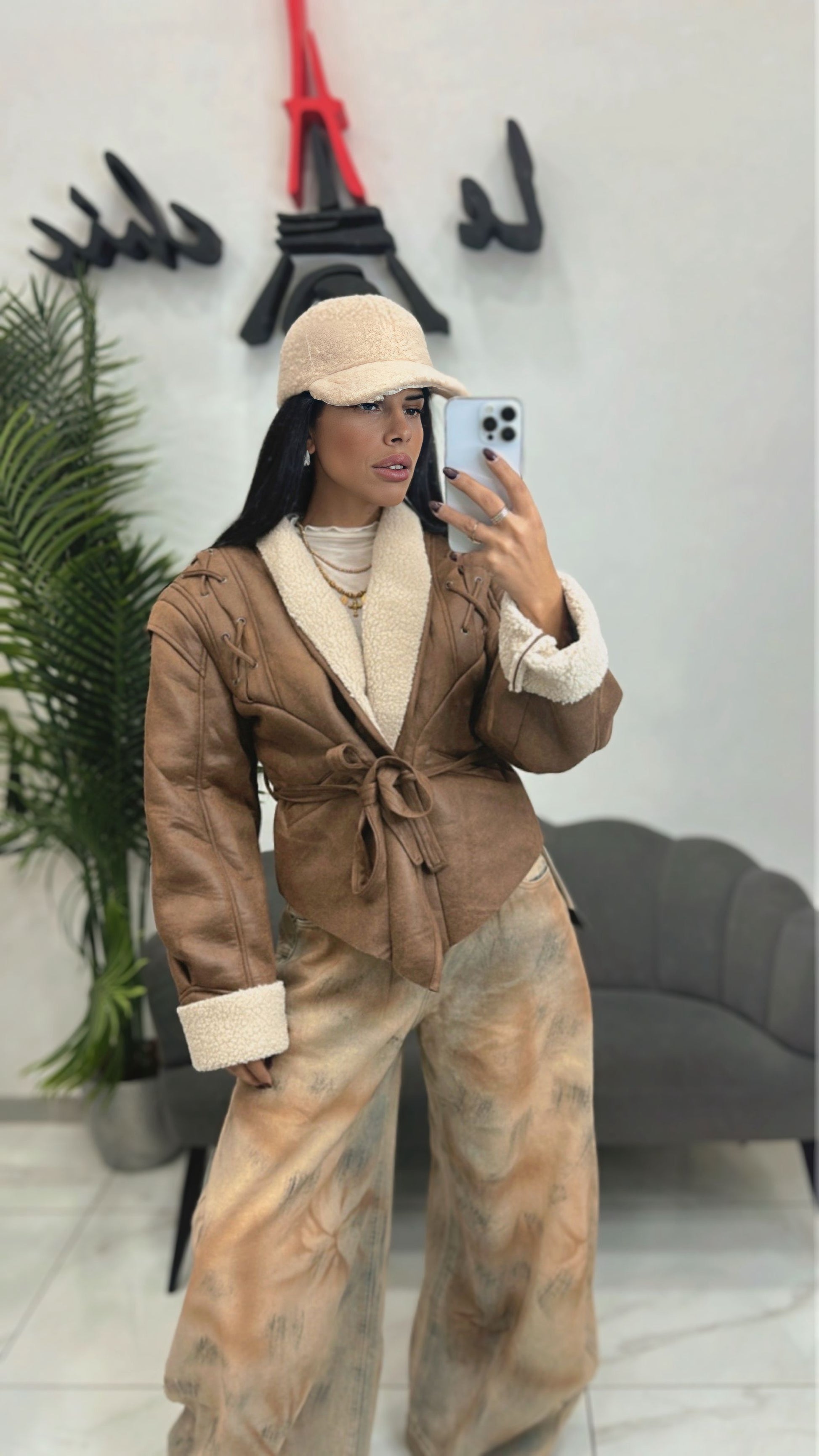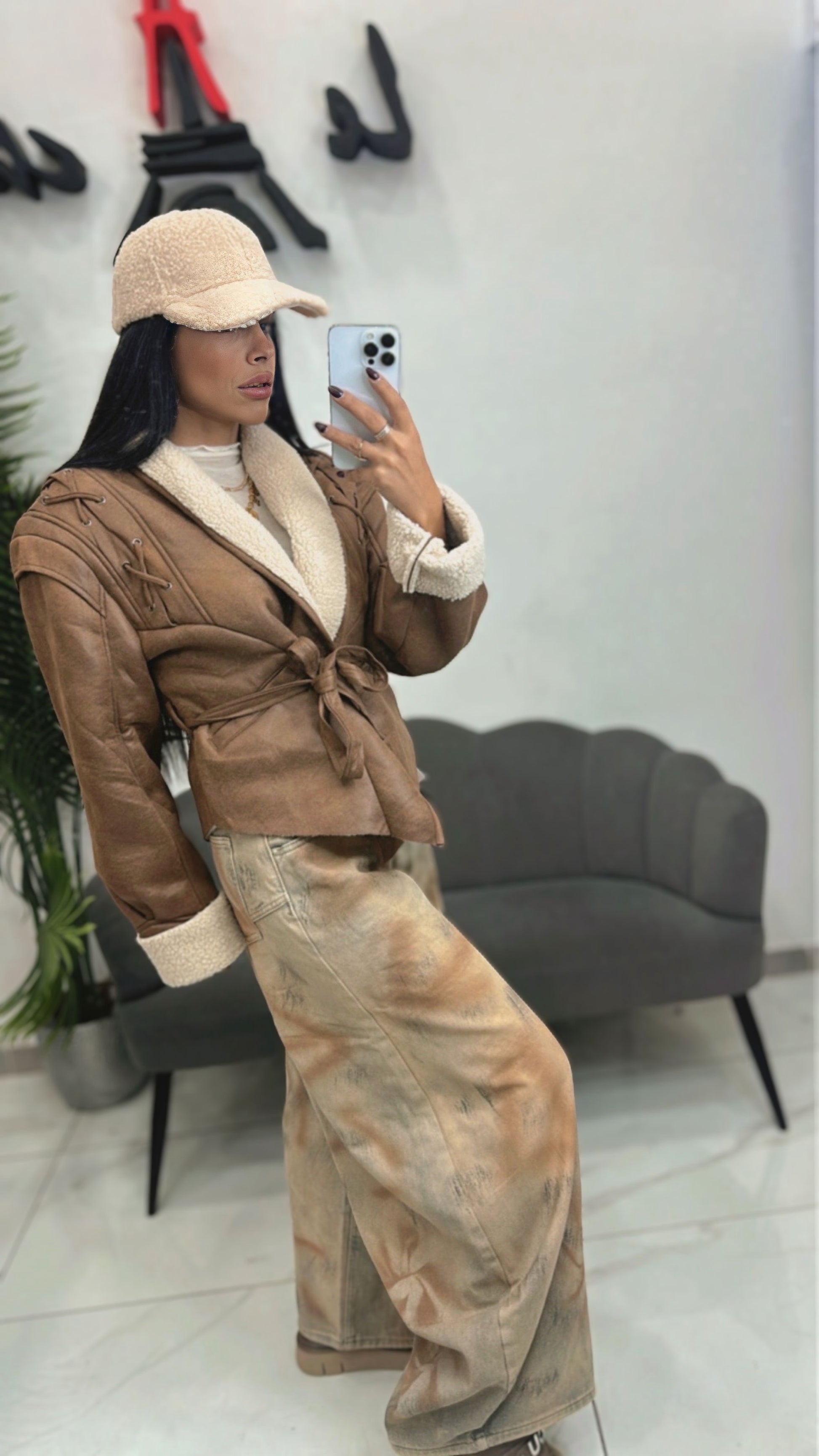 Montone effetto vintage con cinturino.