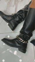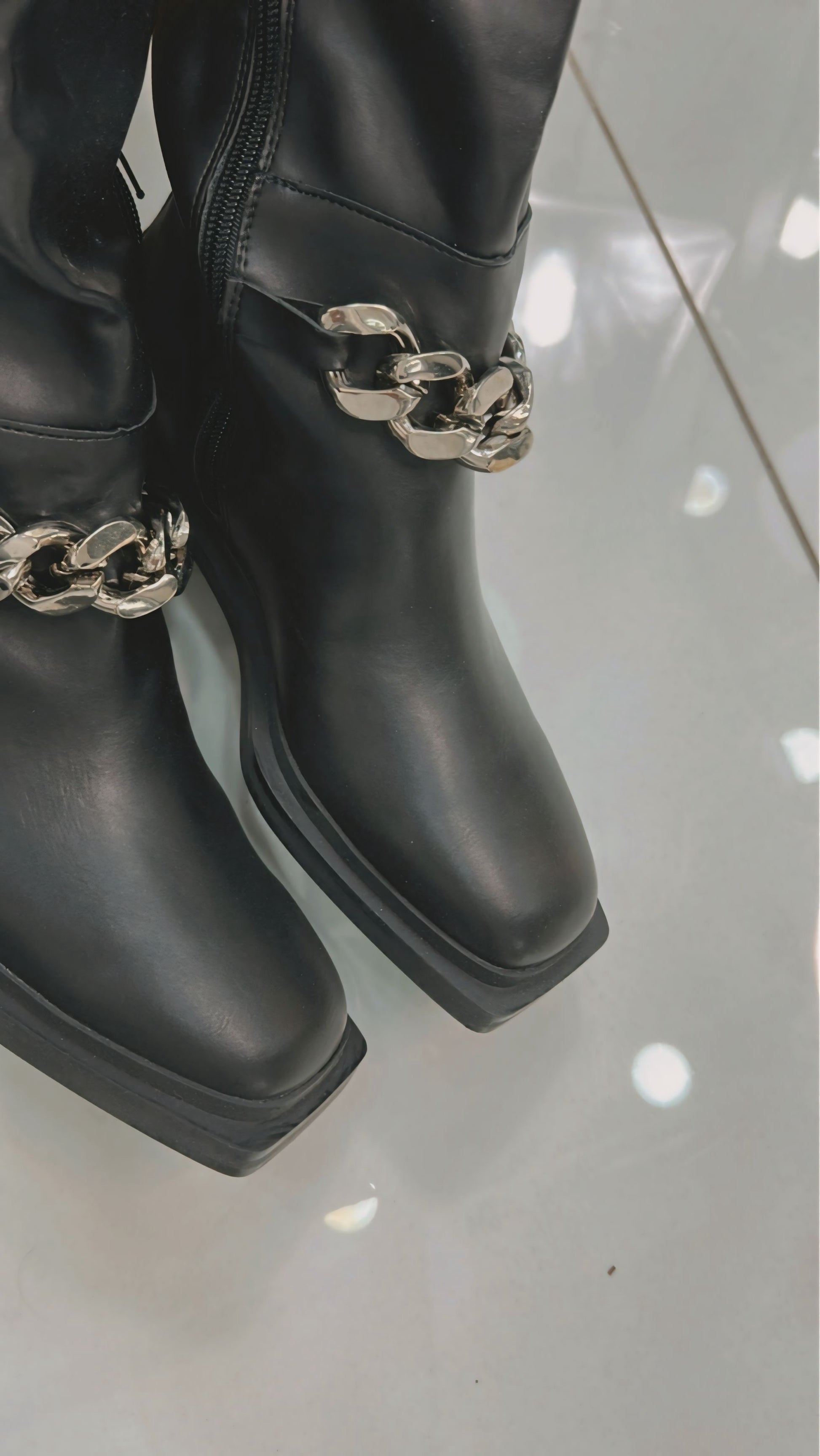 Stivali donna a punta quadrata nero gambale morbido al ginocchio - NERO