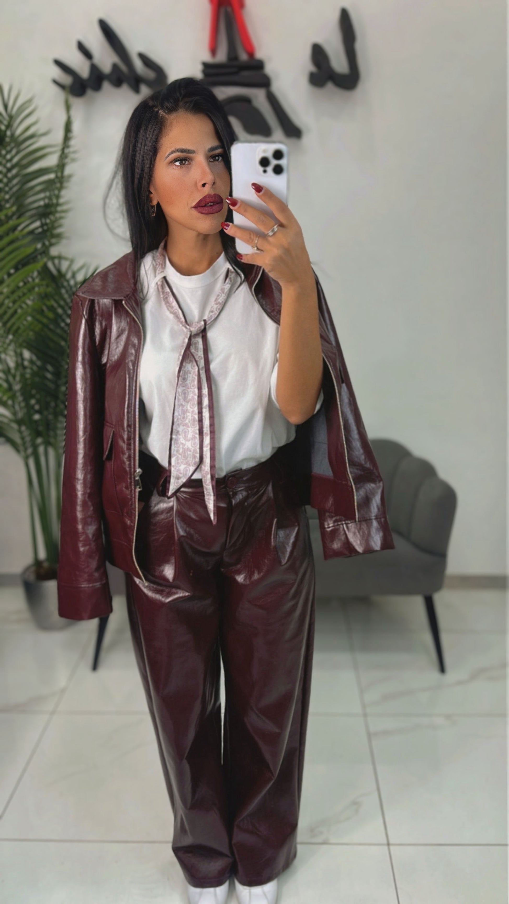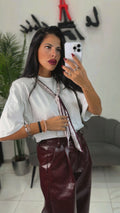 T-Shirt over con spalline e foulard con decorazioni bordeaux