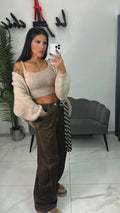 Top + Cardigan in lana Beige